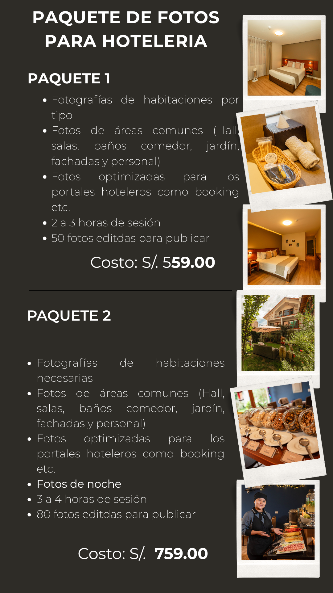 "Aumenta tus reservas en Cusco con fotografía profesional de alto impacto. Especialista en hotelería, creo imágenes diseñadas para destacar en Booking y Airbnb. Capturo la mejor luz y los detalles de tus espacios para enamorar al viajero antes de su llegada. ¡Convierte visitas web en huéspedes confirmados hoy mismo!"